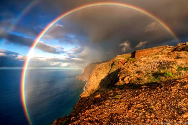 - У радуги, которой мы любуемся после дождя, нет начала и нет конца, потому что на самом деле она имеет круглую форму. Просто мы видим лишь половинку радуги, а остальная часть остается скрытой за горизонтом. Увидеть радугу полностью можно лишь с высоты птичьего полета или самолета.