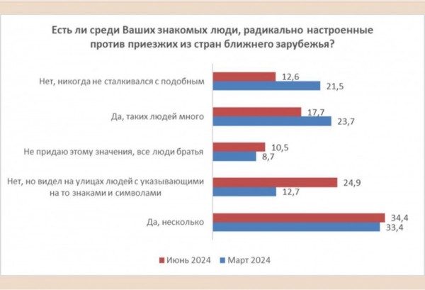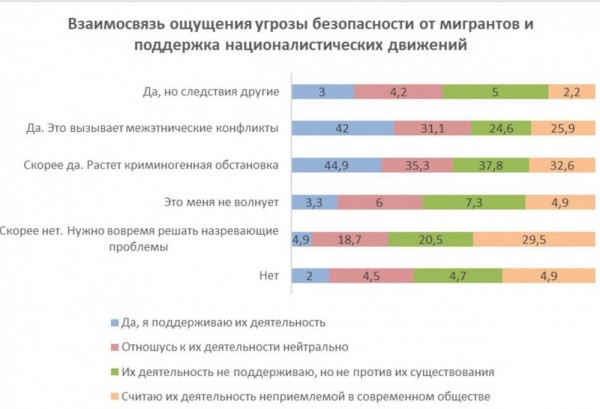 Но при этом, хотя по факту, исходя из работы правоохранительных органов и всей городской администрации, ситуация остается стабильной, мы имеем рост по ряду позиций антимигрантских настроений в обществе, по крайней мере, мы не имеем снижения этих показателей. И это говорит о том, что неприязнь части населения к мигрантам формировалась долго, основания для этого прочные, мнение это является устойчивым, изменять его очень сложно.