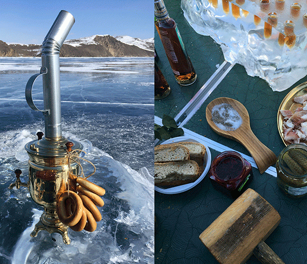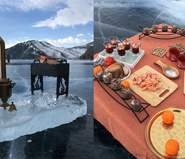 Туроператор «Кайлаш» на зимних экскурсиях, которые длятся по 6-7 часов, всегда организует горячий обед и ставит самовар. Пикник на льду – это незабываемое впечатление! Инструкторы делают расколодку – пробивают лед – и тогда можно попробовать на вкус знаменитую байкальскую воду.