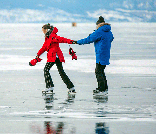 Катание на коньках - самое популярное занятие на зимнем Байкале, особенно это стало модным после популярного фильма «Лед». Даже если человек ни разу не стоял на коньках, на Байкале есть шанс овладеть этим навыком: можно тренироваться каждый день, потому что все турбазы находятся рядом с берегом замерзшего озера.