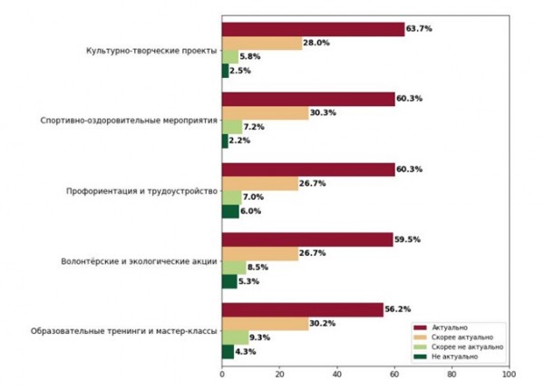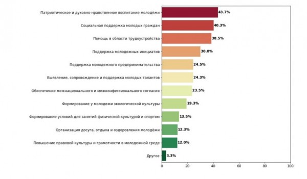Триада ключевых направлений молодежной политики, по мнению участников опроса, выглядит так: