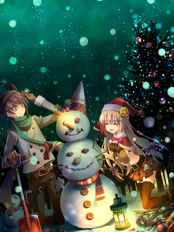 Чтобы найти обои на рабочий стол или картинки для электронной открытки достаточно вписать в поисковике слово «аниме», добавить к нему приписку art или «арт» и фразу «Новый год». Все просто. Но чтобы не затеряться в огромном количестве аниме-артов, вот интересная подборка с самыми яркими и запоминающимися новогодними образами в стиле аниме: