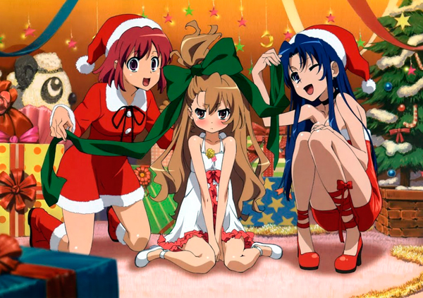- «Торадора» (Toradora). Торадора следует за группой друзей, чья любовная жизнь создает хитрую паутину отношений. Аниме в целом не имеет праздничной тематики, но эпизод «Фестиваль в канун Рождества» (Christmas Eve Festival) настроит вас на праздничный лад. В этой серии многие сюжетные арки и события доходят до точки кипения, так что будьте готовы как следует порадоваться и посмеяться.